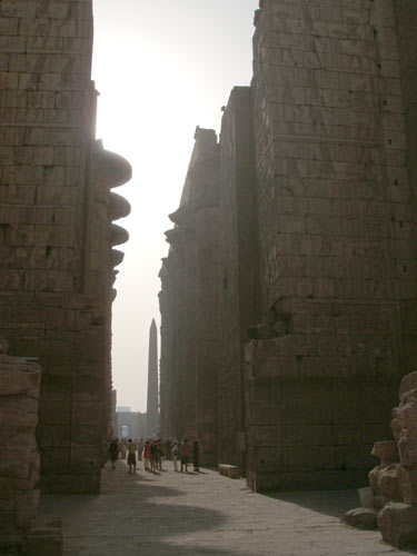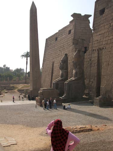 We then moved on a couple of miles to the Temple of Luxor itself, started around 1450 BC and finished 100 years later in the reign of Ramses II. It was originally connected to Karnak Temple by a road lined by small sphinxes. |
