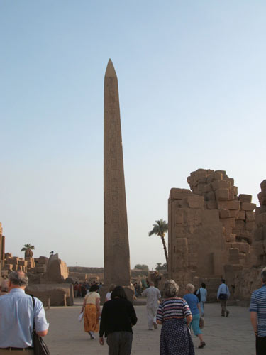 ![]() Obelisk of Queen Hatshepsut. After her death a wall built by her stepson King Tuthmose III to surround+ hide it from view when she was out of favour. |